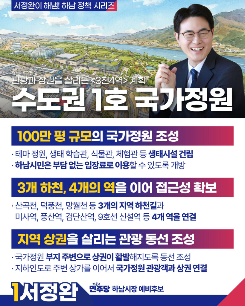 관광과 상권을 살리는 <3천4역> 계획국가정원으로 녹색경제 하남을 열겠습니다!하남발전은 누가 하남? 서정완이 해냄!