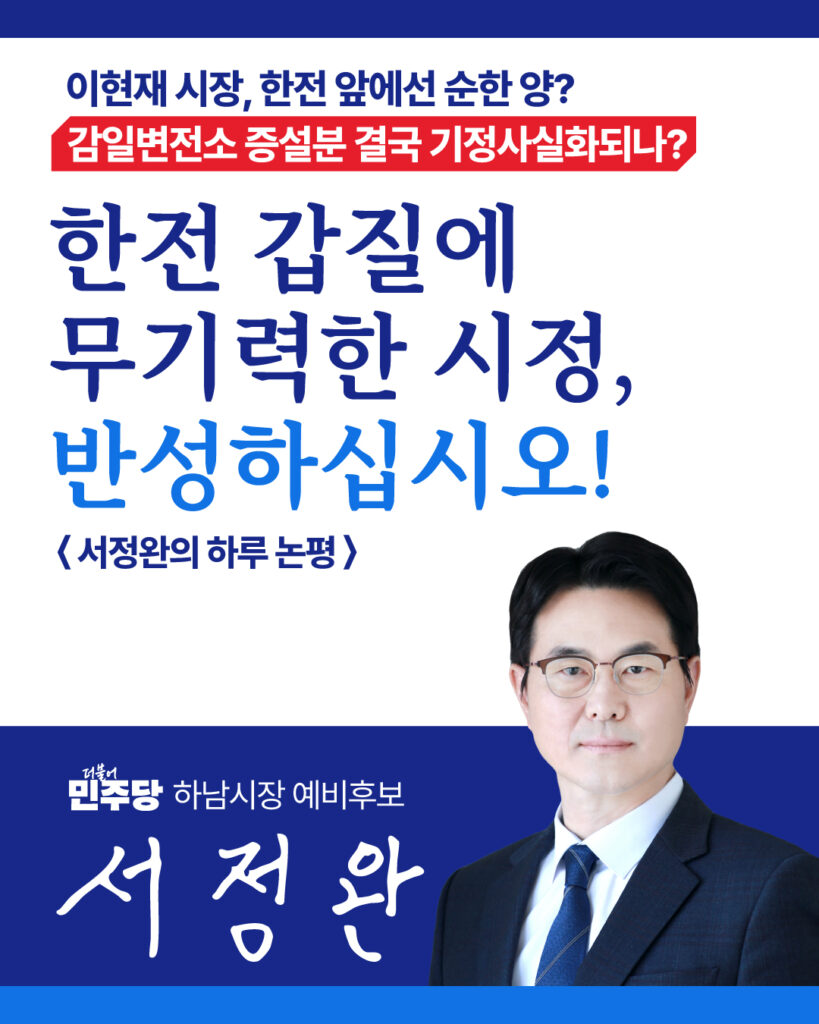 [서정완의 하루 논평] 한전 갑질에 무기력한 시정, 반성하십시오!