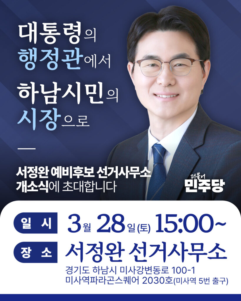 < 서정완 하남시장 선거사무소 개소식에 초대합니다 >