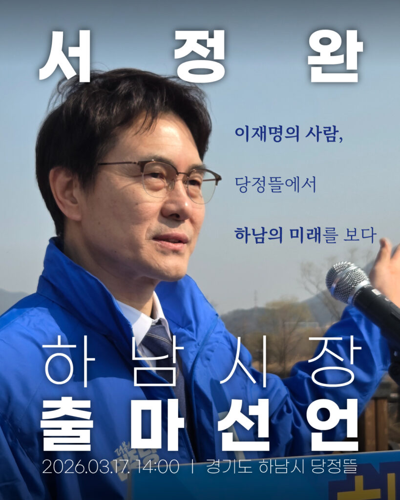 안녕하세요. 하남시장 예비후보 서정완(전 이재명 대통령 청와대 행정관)입니다. 저희 선거사무소 개소식에 정중히 초대 드리오니 참석하시어 자리를 빛내주시길 바랍니다. 🔹 일시ㅣ2026년 […]