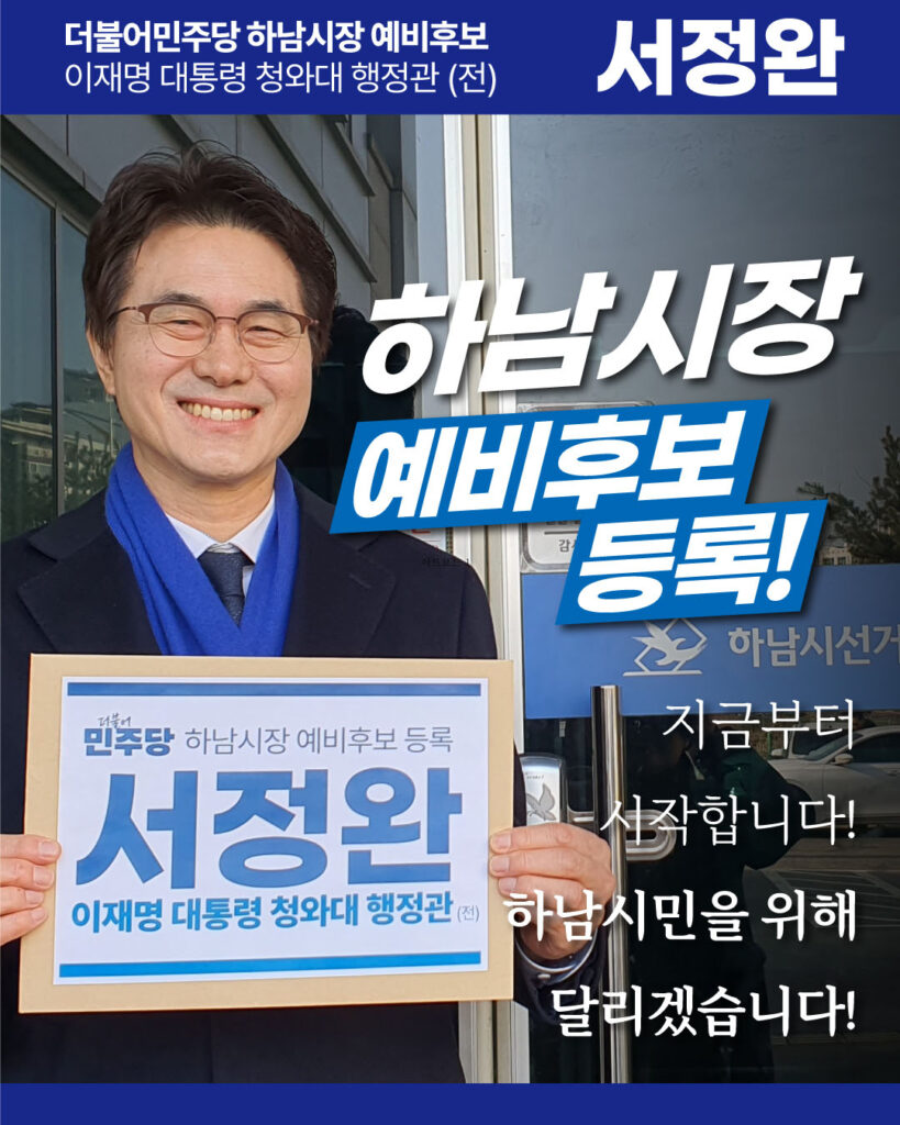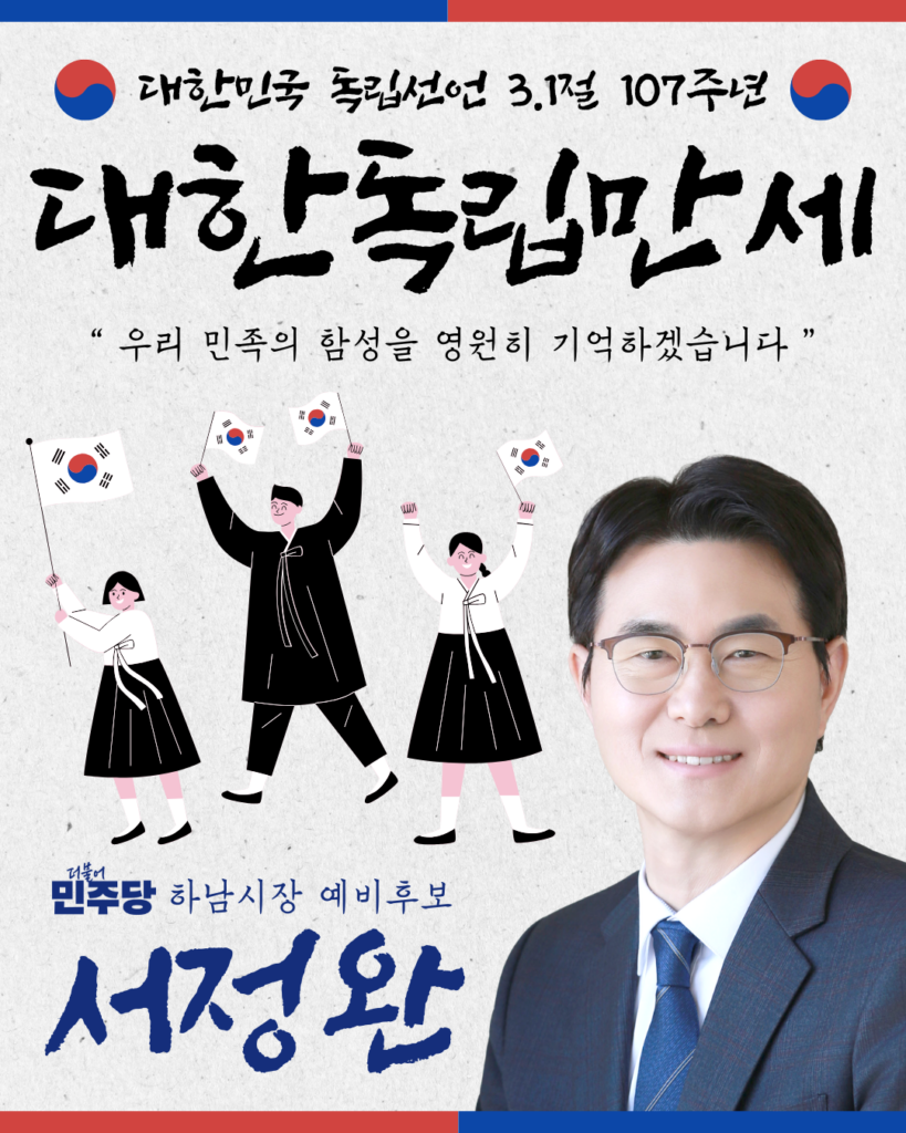 존경하는 하남시민 여러분, 안녕하십니까! 하남시장 예비후보 서정완입니다. 저는 오늘, 하남의 기분 좋은 변화와 시민 여러분의 더 나은 삶을 향한 무거운