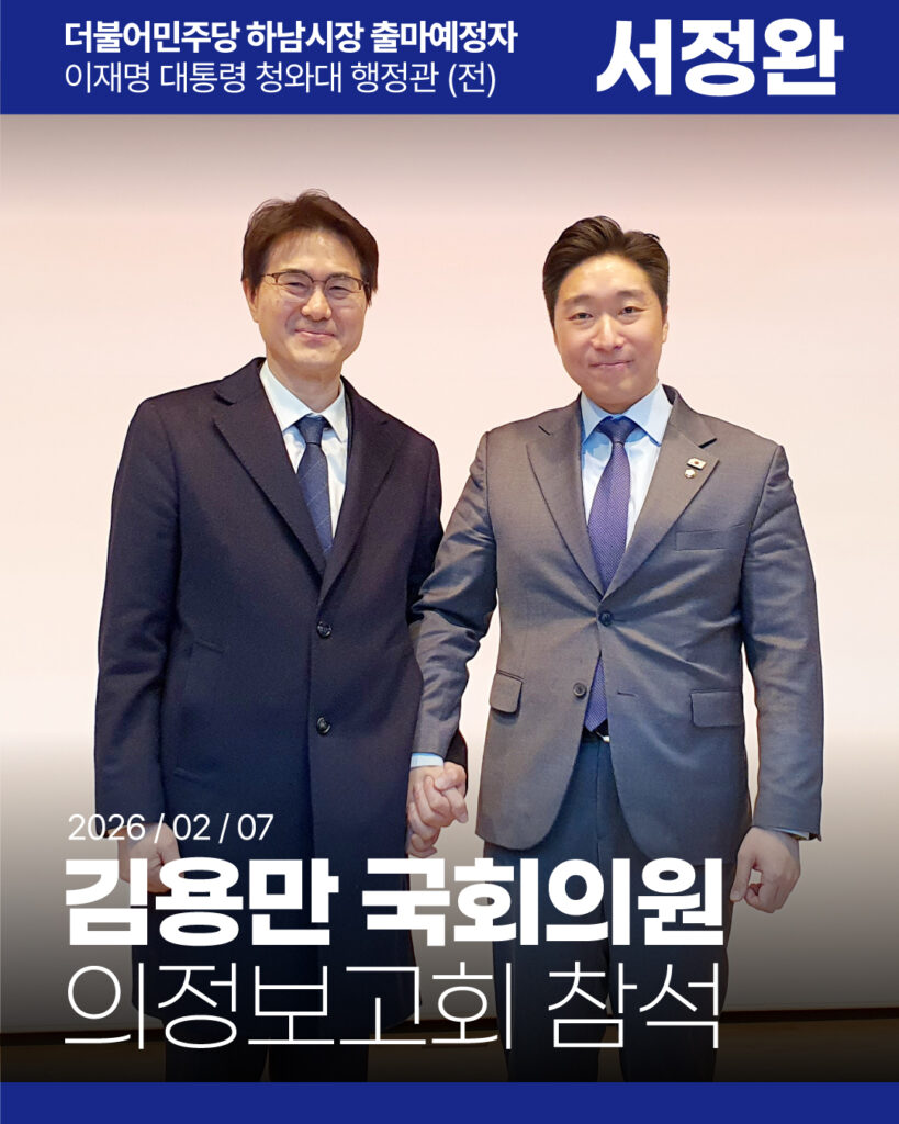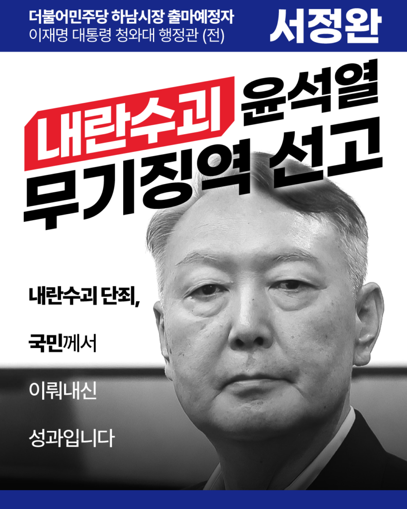 안녕하세요. 하남시장 출마예정자 서정완입니다. 지난 2025년 6월 4일 새벽, 이재명 정부의 출범과 함께대통령비서실 행정관으로 부름을 받았습니다. 12.3 내란 이후 무너진