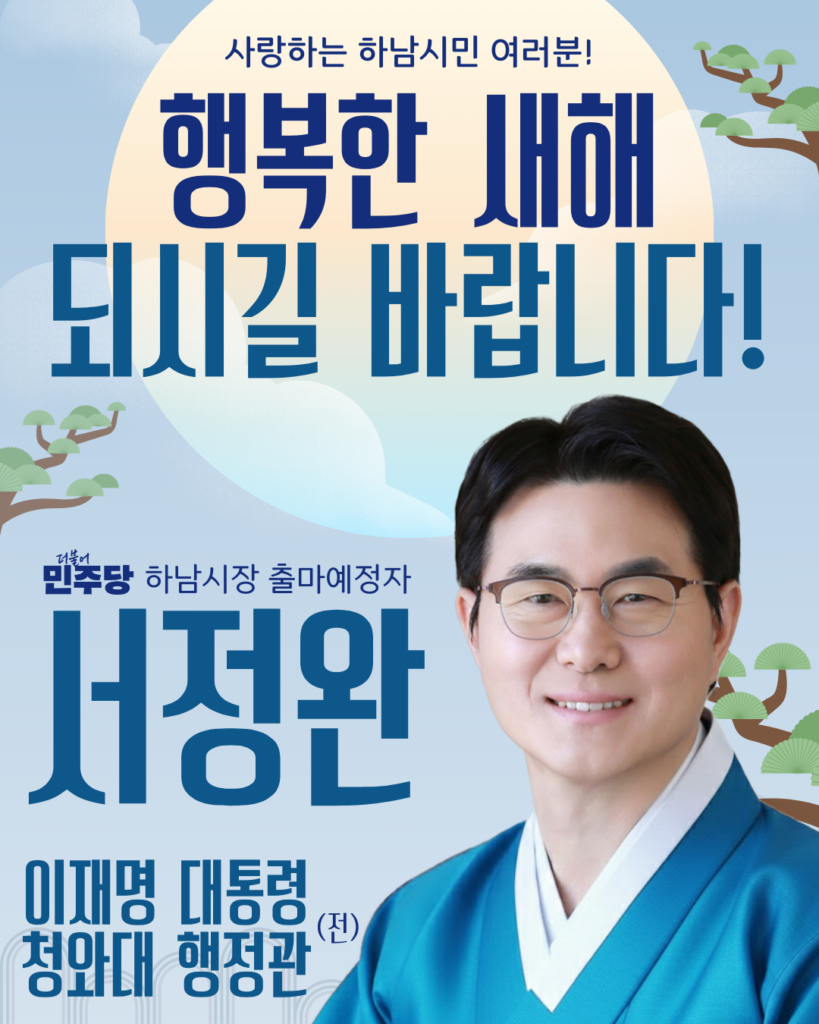 사랑하는 하남시민 여러분! 반갑습니다. 서정완입니다. 이재명 정부와 함께 맞이하는 첫 민족의 대명절, 설이 한걸음 다가왔습니다.희망찬 새해를 맞아 시민 여러분의 가정에